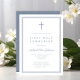 Elegante Dusty Blue Cross Boy Primeiro Convite Comunitário.