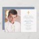 Convite Elegante Dusty Blue Cross Foto Boy Primeira Comunh
