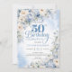 Convite Elegante Dusty Blue e Ivory Flowers 50 anos