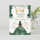 Convite Elegante Emerald Green Floral Gold Crown Mis Quinc