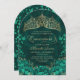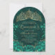 Convite Elegante Emerald Green Princess Crown Quinceanera