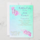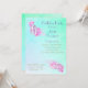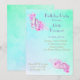 Um convite de aniversário feminino e delicado com tema de balé em rosa. Situado em um fundo verde pastel suave e etéreo em aquarela. O design, cuidadosamente criado com aquarelas, inclui um par de sapatilhas de balé rosa com fitas de aparência de cetim, rodeadas por peônias rosa e um laço. No canto inferior direito, uma saia de balé / tutu com mais laços e peônias rosa e respingos de aquarela. Um design elegante e sofisticado.