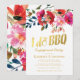 Convites de festa de engajamento de churrasco com um clássico fundo branco, exibição de flores em aquarela, um título tipográfico em folha de ouro falso elegante e um modelo de festa de churrasco "eu aceito" moderno.