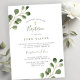 Menino moderno minimalista ou menina Baptismo / Convite de Natal com cor d'água, folhas de folhagem de eucalipto verde e cruz de ouro.