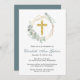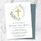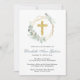 Convite Elegante Eucalyptus Dourado Cross Script Baptism
