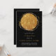 Um convite de jantar sofisticado e formal moderno, apresentando um círculo de brilho dourado, com tipografia dourada e branca. Adequado para muitos eventos pessoais e corporativos.