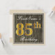 Este design de convite simples e bolsa mensageifesta de aniversario elegante apresenta uma mensagem personalizada como "85.º Aniversário do Primeiro Nome" (com o "85.º" a ter uma aparência falsa/imitação de cor dourada) dentro de uma área quadrada de aparência rústica/imitação de madeira com um contorno simples de fronteira. O nome está em um texto elegante, de cor branca, parecido com script, e pode ser personalizado. A parte traseira apresenta detalhes de convite personalizáveis. Um convite de aniversário como este poderia talvez ser usado ao convidar pessoas para uma festa de aniversário que está sendo realizada para alguém que está celebrando seu oitenta e cinco anos. [~Z0000231]