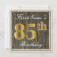 Convite Elegante, Faux Wood, Faux Dourado 85.º Aniversário