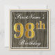 Convite Elegante, Faux Wood, Faux Dourado 98.º Aniversário
