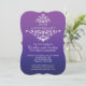 Convite de aniversário de casamento lindo com um floreio de folhas de damasco branco vintage chique sobre um fundo roxo ombre moderno. Disponível em nossa loja em uma grande seleção de cores modernas e atuais. Pedidos personalizados são sempre bem-vindos! Fácil de personalizar com as informações da sua festa de aniversário e pode ser personalizado para aniversário de 25 anos de casamento, 30 anos de casamento, 35 anos de casamento, 40 anos de casamento, 45 anos de casamento, 50 anos de casamento, 55 anos de casamento, 60 anos de casamento,
