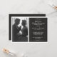 Destaque o casal comemorado com uma foto original do casamento ou uma foto de hoje neste lindo convite de festa com cartão de foto preto e branco. Um texto elegante com um fundo sutil de listras de smoking ao lado da foto do casal especial torna-se uma bela apresentação para a família e convidados. Cada linha de texto pode ser personalizada para você modificar para atender perfeitamente às suas necessidades e planos de festa.