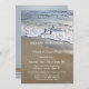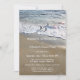 Um convite elegante de aniversário de casamento com ondas fluindo na areia da praia.