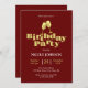 O convite de aniversário moderno apresenta champanhe dourado com texto de tipografia ousado "festa de aniversário" em fundo burgundy. Personalize os convites de festa de aniversário adicionando seu nome e detalhes da festa.
