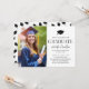 Celebre seu graduado com este convite de formatura elegante, apresentando uma tipografia serifada estilizada e em negrito 'Graduado', combinada com um script refinado e um retrato de final de curso para um visual sofisticado e polido. O verso revela um padrão de gorros de graduação espalhados que adiciona um toque comemorativo, mantendo o design coeso. O texto totalmente personalizável facilita a adição de todos os detalhes da sua festa.