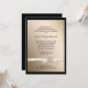 Aqui está um convite simples, mas elegante e sofisticado para celebração de Bodas de Ouro em dourado com uma borda preta. Uma imagem de fita de cetim branco falso é amarrada na parte inferior por uma imagem de um anel dourado. Seu texto personalizado é preto, e há bastante espaço. O verso do convite é preto. Sofisticado! *Por favor, note que a imagem é impressa e não contém metal ou fita. Este convite é versátil o suficiente para ser adaptado a qualquer ocasião formal.