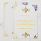 Um elegante desenho de fleur-de-lis dourado adornando os cantos do seu convite de casamento irá definir o tom do seu dia especial. O padrão intrincado e design sofisticado criam um toque lindo e atemporal que complementa perfeitamente qualquer tema de casamento. Perfeito para celebrações de casamento formais ou elegantes, este quadro está pronto para mostrar seu convite com estilo.
