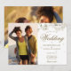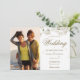 Um convite de casamento sofisticado com delicadas flores da primavera emoldurando os detalhes do seu casamento em letras douradas elegantes. Personalize com os detalhes do seu evento especial e 2 fotos especiais. Desenhado por Thisisnotme©
