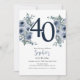 Convite Elegante Floral Azul 40º Aniversário