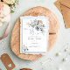 O delicado padrão floral, em tons de azul claro, bege e branco, cria uma sensação de beleza natural e graça que é simplesmente impressionante. O design do cartão é perfeitamente equilibrado, com um layout limpo e moderno que destaca o motivo floral sem o sobrecarregar. O uso de tons azul claro e branco é particularmente marcante, transmitindo uma sensação de pureza, frescor e serenidade que captura perfeitamente a essência de uma bela celebração de casamento. Itens correspondentes estão disponíveis.