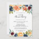 Este convite elegante de bodas de ouro para o 50º aniversário de casamento é perfeito para um evento moderno. O design apresenta buquês desenhados à mão com flores rosa, rosa claro, amarelo, borgonha, vermelho, índigo e folhagem verde, inspirando beleza natural. Altere o número para celebrar qualquer marco de aniversário de casamento.