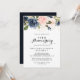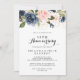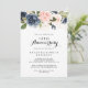 Este convite de aniversário de casamento de 50 anos em caligrafia floral de inverno elegante é perfeito para uma celebração moderna de aniversário. O design apresenta lindas flores escuras pintadas à mão em azul, azul-marinho, rosa, bege, dourado e folhagens verdes, agrupadas em buquês elegantes.