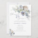 Convite Elegante Floral em Azul Empoeirado para Aniversári