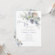 O delicado padrão floral, em tons de azul claro, bege e branco, cria uma sensação de beleza natural e graça que é simplesmente impressionante. O design do cartão é perfeitamente equilibrado, com um layout limpo e moderno que destaca o motivo floral sem o sobrecarregar. O uso de tons azul claro e branco é particularmente marcante, transmitindo uma sensação de pureza, frescor e serenidade que captura perfeitamente a essência de uma bela celebração de casamento. Itens correspondentes estão disponíveis.