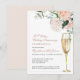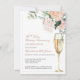 Este elegante design de aniversário apresenta flores rosa em aquarela, um fundo branco, uma taça de champanhe e tipografia personalizada.