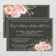 Aglomerado de rosas cor de rosa romântico e atemporal com sotaques de coral sobre um fundo dramático de carvão - muito chique! Este lindo desenho de casamento apresenta elementos florais e botânicos na moda com um visual fresco e moderno.
