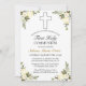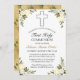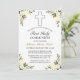 Celebre a Primeira Comunhão da sua filha com amigos e família convidando-os com esta elegante carta de convite da Primeira Comunhão de Ouro Sagrada. Este design apresenta uma bela cruz com uma armação floral contra um simples fundo branco. Personalize o texto e a fonte ao seu gosto. Outras fontes e estilos disponíveis. Por favor, entre em contato conosco com seu pedido especial e ficaremos felizes em ajudá-lo.