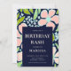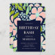 Convite Elegante Floral rosa e azul Bash de Aniversário