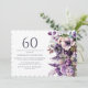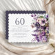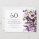Flores roxas elegantes, convite de aniversário 60º adulto/feminino. Este convite pode ser adquirido impresso ou como convite digital para compartilhar com a família e os amigos nas mídias sociais ou por e-mail. Entre em contato comigo para obter assistência com suas personalizações ou para solicitar outros produtos Zazzle correspondentes ou coordenadores para o seu partido.