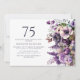 Flores roxas elegantes, convite de aniversário 75º adulto/feminino. Este convite pode ser adquirido impresso ou como convite digital para compartilhar com a família e os amigos nas mídias sociais ou por e-mail. Entre em contato comigo para obter assistência com suas personalizações ou para solicitar outros produtos Zazzle correspondentes ou coordenadores para o seu partido.