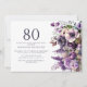 Convite de aniversário de 80 para adultos/mulheres de flores roxas elegantes. Este convite pode ser adquirido impresso ou como convite digital para compartilhar com a família e os amigos nas mídias sociais ou por e-mail. Entre em contato comigo para obter assistência com suas personalizações ou para solicitar outros produtos Zazzle correspondentes ou coordenadores para o seu partido.