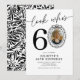 Celebre um marco incrível com um estilo refinado e atemporal com este elegante convite de aniversário de 60 anos com foto Look Who's 60. Com um layout limpo e moderno, o design destaca a foto escolhida dentro de uma moldura ilustrada delicada, finalizada com um detalhe de laço macio para um toque charmoso e gracioso.