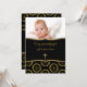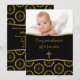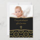 Convite Elegante Foto de Bebê Preto e Dourado Batismo