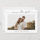 Uma foto elegante com letra de forma para salvar a data com foto horizontal e texto minimalista. Clique no botão personalizar para customizar este design.