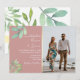 Convite Elegante Foto de Casamento com Rosa Poenta e Folha