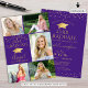Convite Elegante Graduado de Colagem de Fotos Dourado Roxo