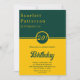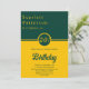 Este elegante convite de Aniversário verde e dourado é perfeito para um Aniversário moderno. o simples design apresenta uma elegante caligrafia de ouro num fundo verde.
