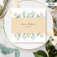 Aprecie seus convidados com este elegante convite de casamento com a delicada cor d'água Eucalyptus greenery enquadrando seus detalhes de casamento. Verde em uma bela mistura de tons verdes, azuis, beige e amarelos. Na moda de faixa central em tom bege atraente. De volta com os mesmos detalhes verdes e de faixa da frente, nomes de casais de enquadramento. Parte da nossa coleção "Elegante Verde Eucalyptus Wedding and Events" com uma variedade de produtos coordenadores disponíveis. Também disponível com faixa central em azul-nebuloso, verde ou branco.