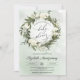 Convite Elegante Greenery Olive Wreath White Roses Baby