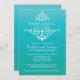 Celebre o seu próximo casamento com a família e amigos com o nosso belo convite de festas de janto de ensaio. Nosso convite para janto de ensaio de na moda e chic apresenta um rico vintage, folha de damascos brancos floresce em um moderno fundo azul-turquesa. Disponível em nosso compro em uma grande seleção de cores quentes e tradicionais. Ordens personalizadas são sempre bem-vindas! Fácil de personalizar com as informações de seu janto de ensaio.
