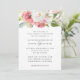 Caracteriza um design floral de jardim em aquarela elegante em tons de rosa, rosa e branco com folhagens e destaques em azul. O verso do convite é emoldurado em florais de jardim correspondentes. Design©Rosalind Moore, Cherry Lane Designs.