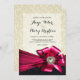 Este convite de casamento sofisticado, luxuoso e elegante, tem um fundo de damasco barroco marfim vintage com um lindo laço de cetim fúcsia e faixas de fita plissada, realçados por uma broche de coração brilhante em pérola falsa e diamante. Se você gostaria deste design em outra cor, entre em contato: cheryl@cheryldanielsart.com. Este lindo convite criado por Cheryl Daniels é perfeito para casamentos, aniversários, celebração de datas especiais e outras ocasiões. "Save the Dates", cartões de detalhes, cartões de RSVP e outros produtos coordenados estão disponíveis.