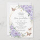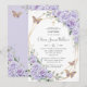 Personalize este convite de batismo/crisma elegante com flores roxas lavanda macias e borboletas com a sua própria redação de forma fácil e rápida. Basta clicar no botão personalizar ainda mais para editar os textos, alterar as fontes e as cores das fontes. Itens correspondentes disponíveis na loja. (c) The Happy Cat Studio
