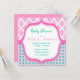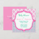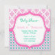 Elegante, sofisticado e lindo rosa, gráfico floral em tons de azul e círculos pontilhados, convites de chá de bebê.