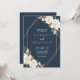 Convite de Casamento Floral Elegante Magnólia Rosa Azul Neutro Dourado e Branco apresenta magnólia elegante, peônia rosa, eucalipto, folhagem e outros elementos de aquarela em branco, rosa azul-marinho ou rosa-peach e mais.