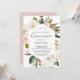 Este elegante convite de magnólia branca e esbranquiçada Quinceañera é perfeito para uma festa de aniversário 15 moderna. O design floral suave apresenta coloração aquosa, cor-de-rosa pincelada, impressionantes flores brancas de magnólia e algodão, com ouro e folhas verdes, num arranjo luxuoso.