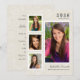 Convite de festa de formatura elegante com fundo de damasco marfim suave com uma colagem moderna de 4 fotos e título "Graduado 2026". Molduras de fotos brancas nítidas e tipografia clássica criam um visual sofisticado e atemporal para formandos e famílias. Personalize com o nome do graduado, escola e todos os detalhes da festa. O verso tem o mesmo estilo de damasco marfim com a redação do convite para um design coordenado de frente e verso.
